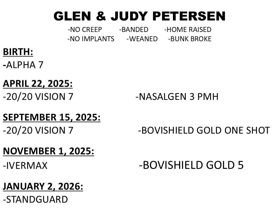60 BLK/BWF HEIFERS, 650-725 LBS, HR, CVP + BOOSTERED, WEANED GLEN & JUDY PETERSEN
