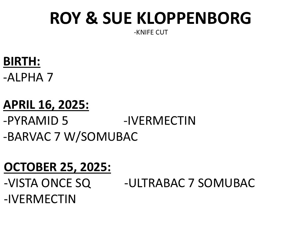 20 BLK/BWF HEIFERS, 650-750 LBS, HR, NI, CVP, ROY & SUE KLOPPENBORG