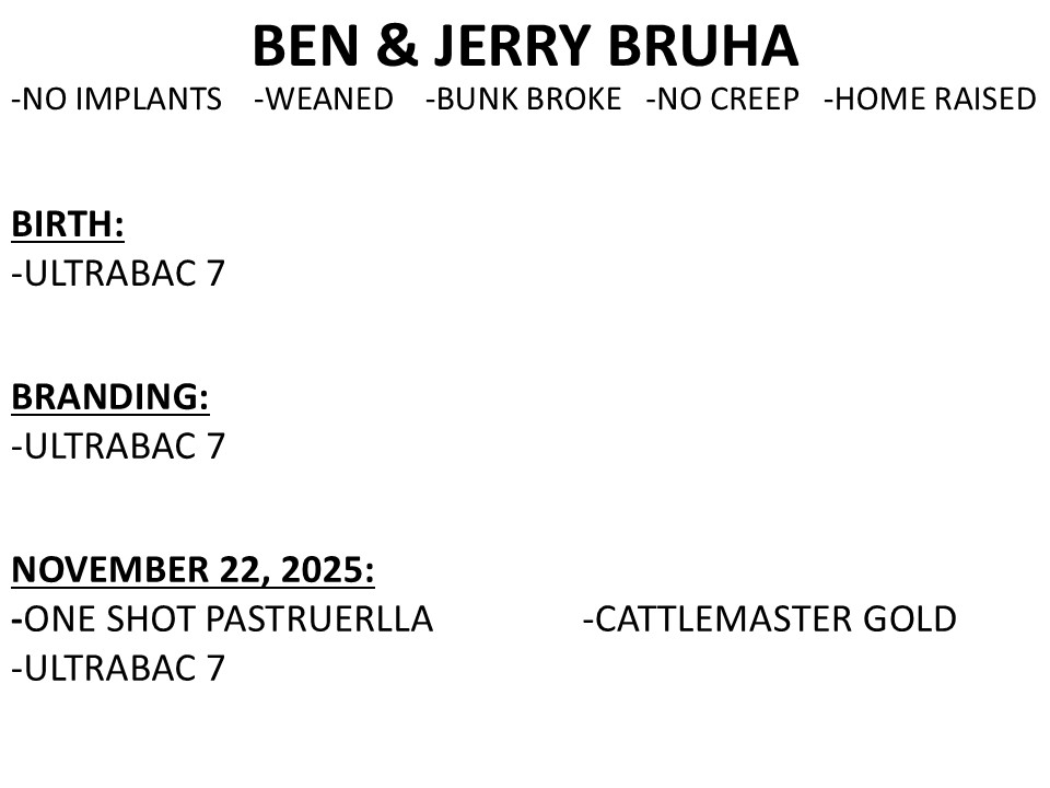 30 BLK/BWF HEIFERS, 550-650 LBS, CVP, HR, NI, WEANED, BUNK BROKE, BEN & JERRY BRUHA