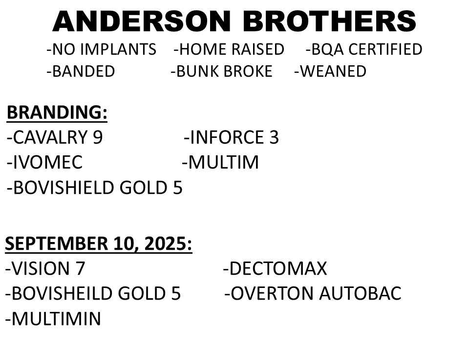 70 BLK ANGUS STEERS, 775-850 LBS, HR, NI, PRE CON SHOTS, WEANED ANDERSON BROS