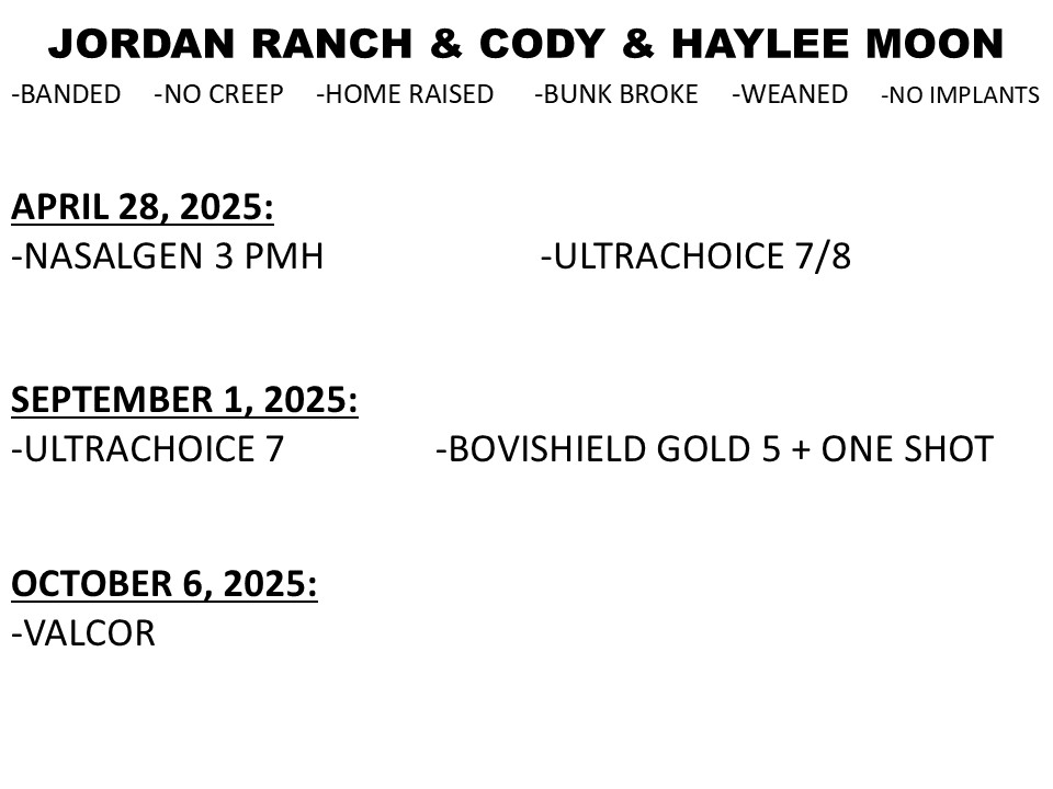 105 BLK/BWF STEERS, 600-700 LBS, NI, HR, CVP + BOOSTER, WEANED JORDAN RANCH & CODY & HAYLEE MOON