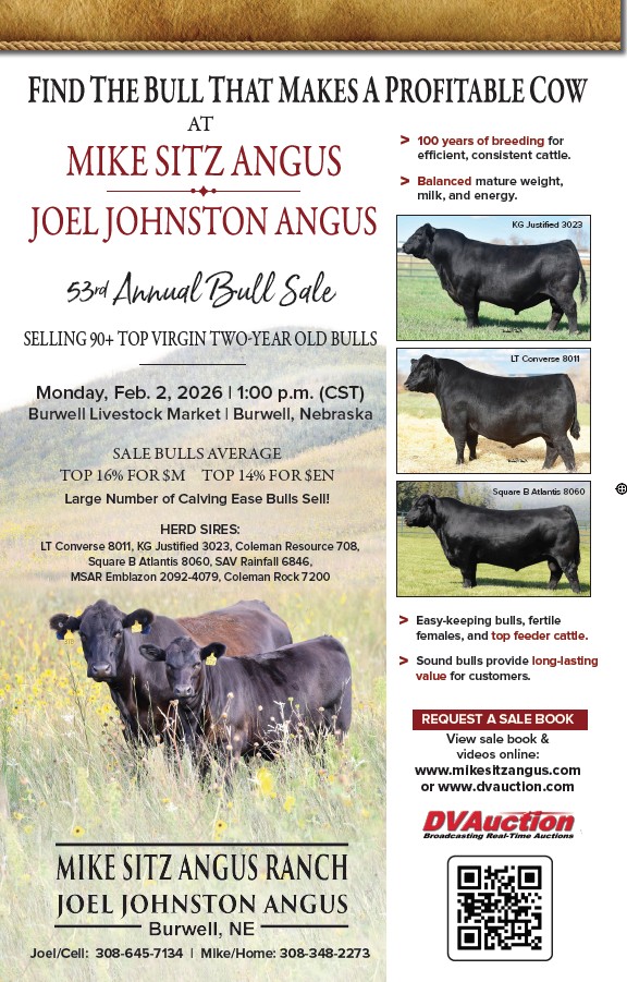 PLEASE PREREGISTER WITH DVAUCTION, UNDER MIKE SITZ ANGUS RANCH SALE, PRIOR TO SALE DAY IF YOU ARE INTERESTED IN BUYING BULLS ONLINE. THANK-YOU